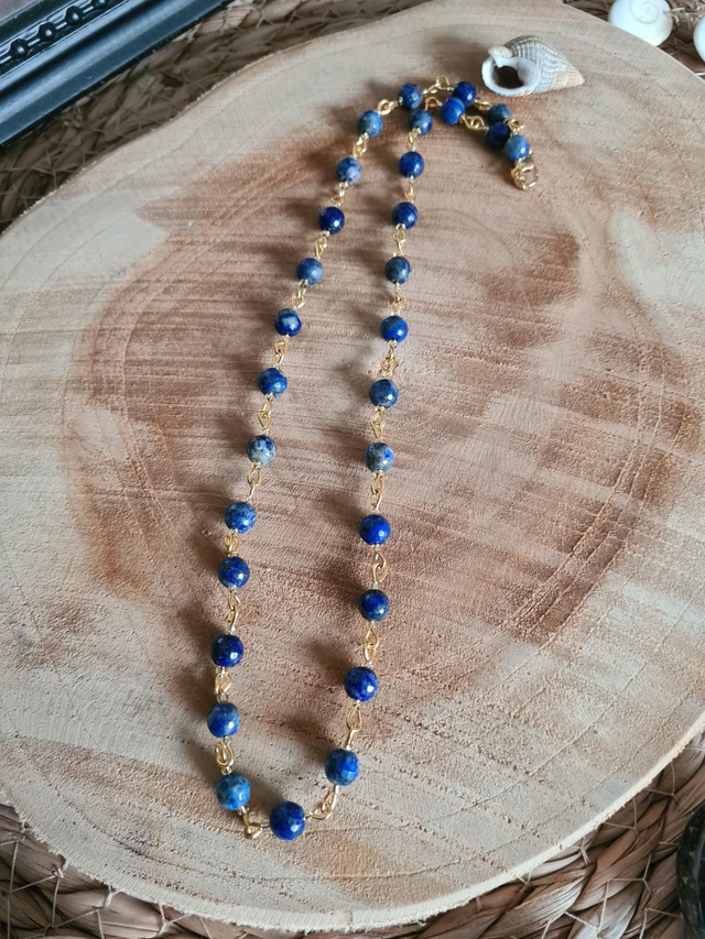 Collier doré ras de cou Lapis-lazuli facété 6mm