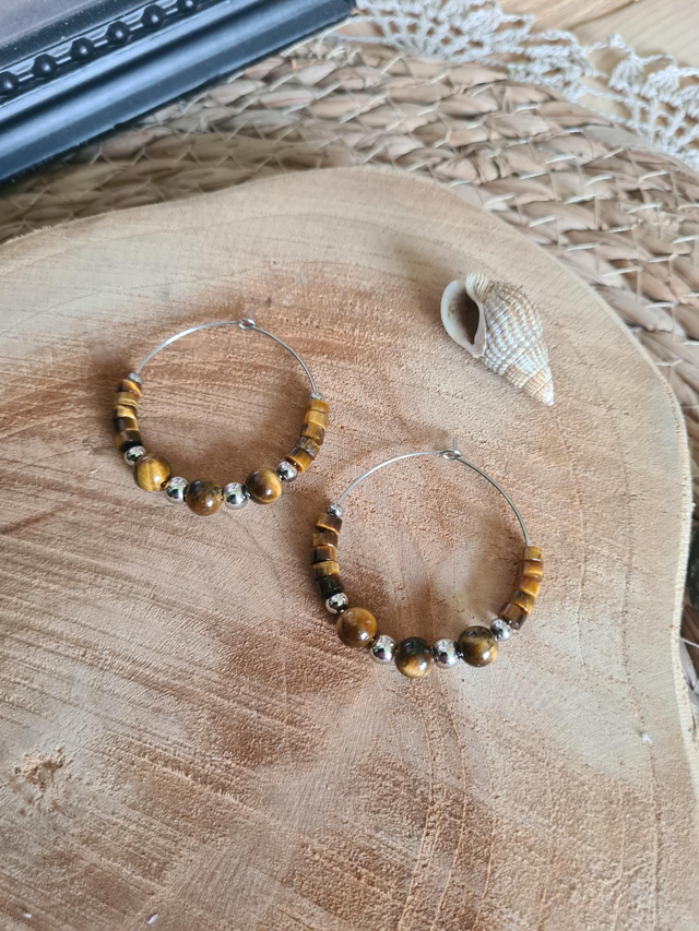 Boucles d'oreilles dorées Obsidienne Œil Céleste
