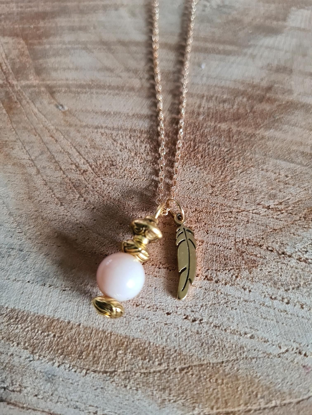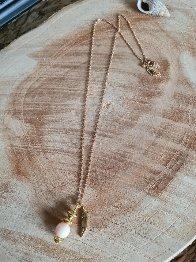 Chaîne dorée et plume en acier inoxydable